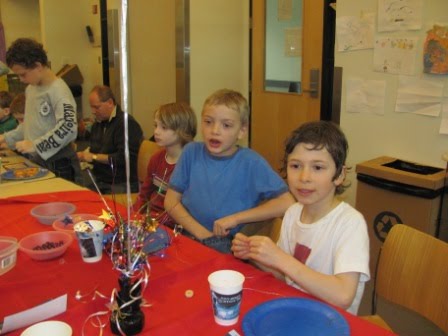 As regularly blog readers know, our family loves birthdays and makes the most of them. Last Saturday was Kieran's eighth birthday. The festivities began on Friday. After I had done my singing with Kieran's second grade class, we celebrated his birthday by having Kieran present two books he had selected to give to the classroom (Hoot